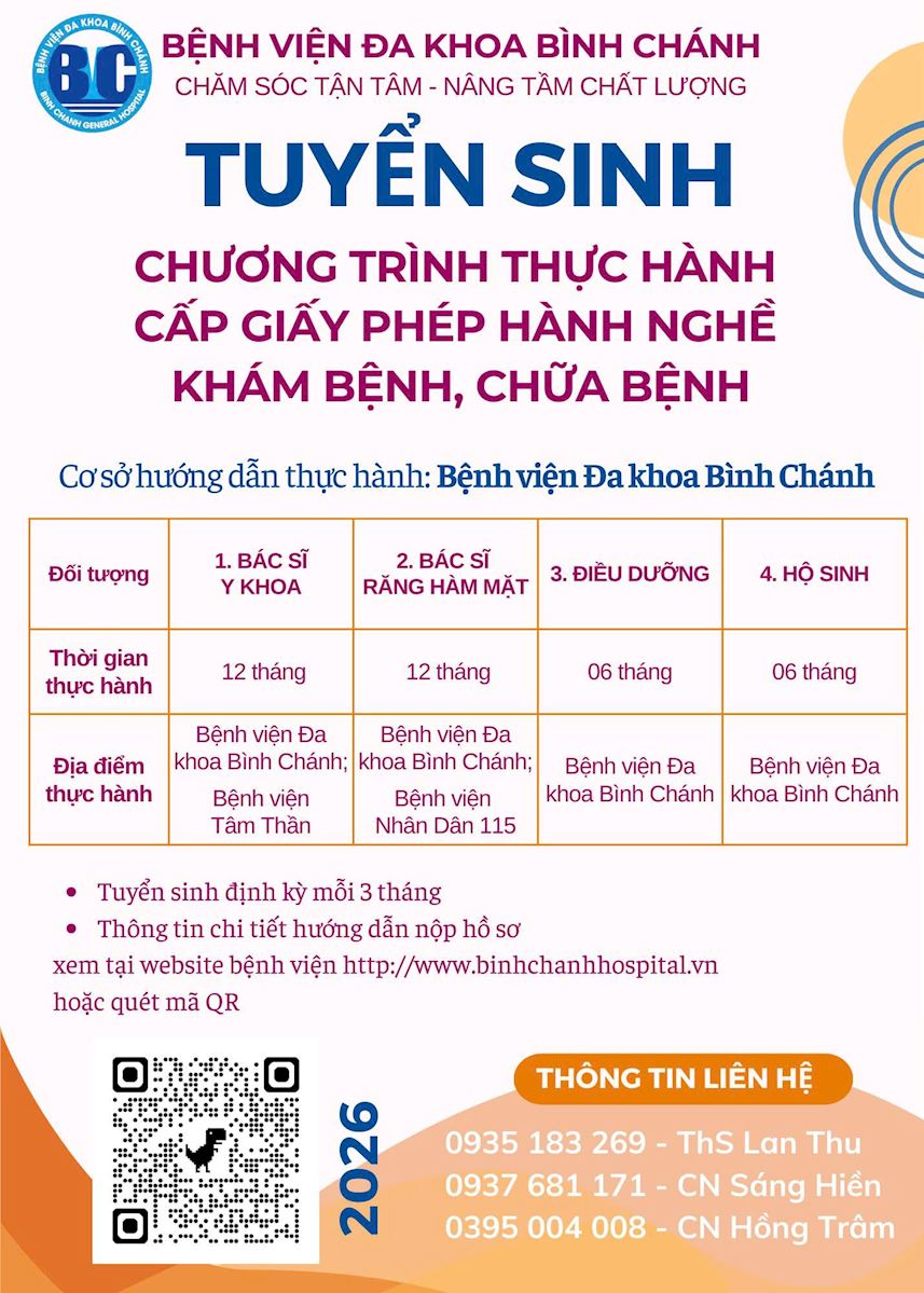BỆNH VIỆN ĐA KHOA BÌNH CHÁNHBINH CHANH GENERAL HOSPITAL"Chăm sóc tận tâm - Nâng tầm chất lượng" | Điện thoại: 028.3760.2895Email: bv.dkbinhchanh@tphcm.gov.vn |